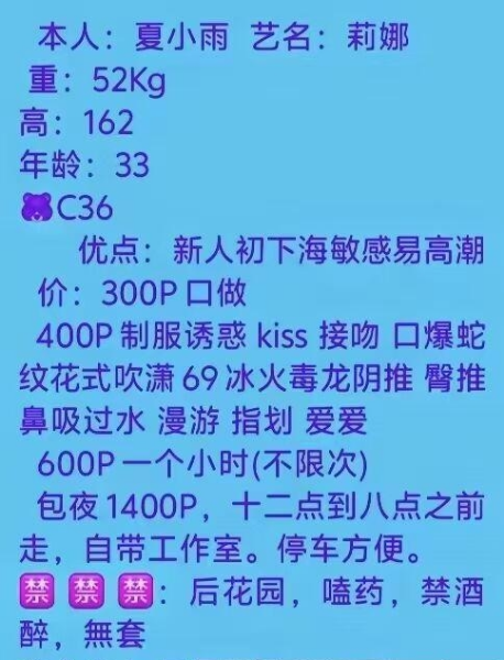 、保证金、照片验证、视频验证等任何提前付费的行为;以及引导下载APP,千万不要上当。同时也请注意仙人跳,在寻欢前不要露富和带过于贵重随身物品。本站只提供整合信息平台并不对寻欢经历负责,被骗一概与本站无关。信息真假请自行甄别,碰到有问题的信息,请及时举报给我们删除信息。